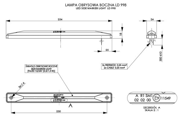 Światło obrysowe boczne