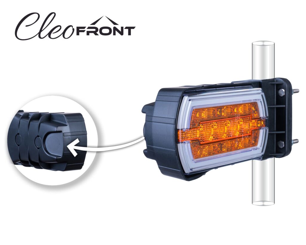 Lampa zespolona CLEOfront LZD 2789 jest kompaktową lampą o nowoczesnym wzornictwie, wykonaną z najwyższej jakości materiałów oraz w energooszczędnej technologii LED, która zapewnia uzyskanie bardzo dobrych parametrów świetlnych przy bardzo małym poborze prądu. Lampa jest w pełni hermetyczna (zgodność ze stopniem ochrony przed zawilgoceniem IP 68), a zakres temperatury pracy wynosi od -30 st. C do + 50 st. C. Do produkcji używane są wyłącznie markowe diody, a ich liczba wynosi 32 szt. Gwarantowane jest również działanie lampy w sposób nie zakłócający pracy innych urządzeń elektrycznych czy elektronicznych w pojeździe, co jest potwierdzone homologacją na kompatybilność elektromagnetyczną (EMC).